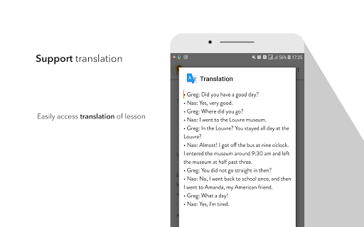 Lesson’s script are prepared in French and English side-by-side (just swipe life to , help you quickly look up for new vocabulary and understand the context.