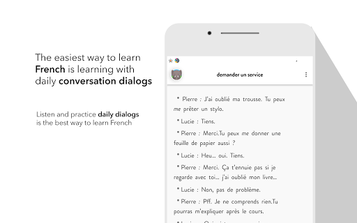 Learn to speak French through hundred of real-life conversation dialog is the most effective way to learn French. Emphasize on listening, the app help you to improve your listening skill, pronunciation, how ask and answer in daily talking.
