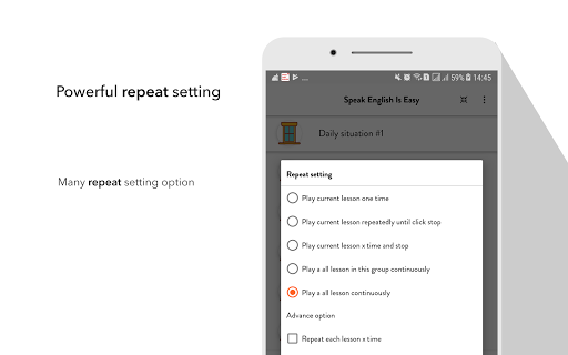 The app is designed with a mindset that how to help user quickly open the lesson and no need to constantly keep the app opened. Just tap the Play button and exit the app, turn off the screen and focus on listening. So it is very useful for you to learn when you are driving.