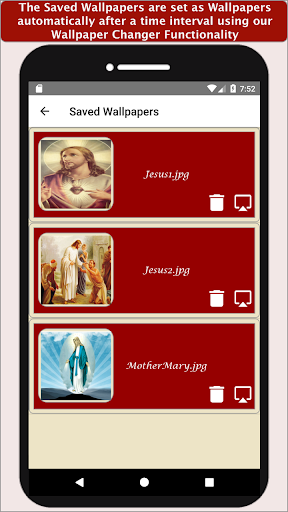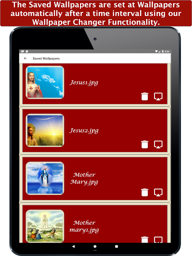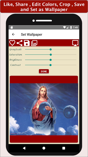 You can Save , Share the Christian Wallpapers. The saved images are automatically set as wallpapers using our Wallpaper Changer functionality, you can adjust the time interval in the settings screen.