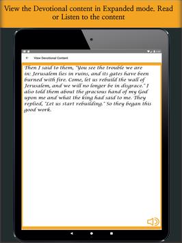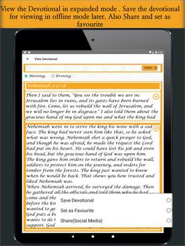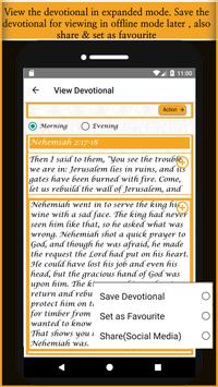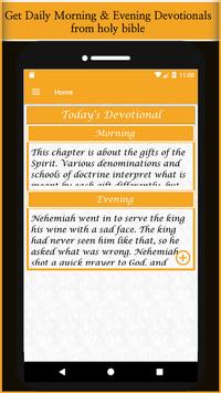 Bible Devotional Daily app delivers daily devotionals for morning and evening from the holy bible. You can read or listen the daily devotional.