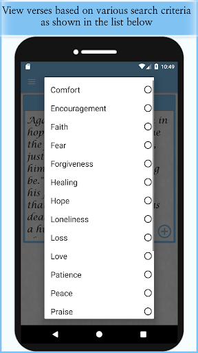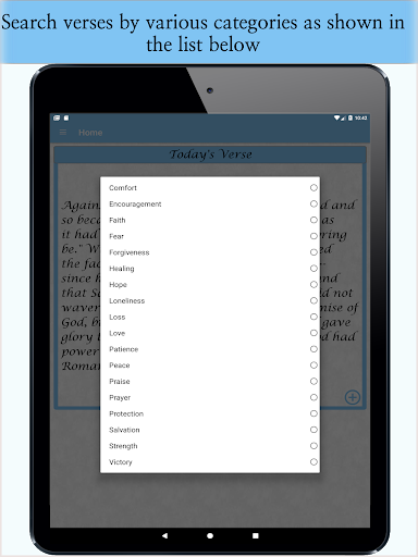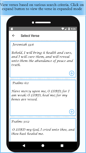 E.g Searching by word "Healing" will get you all verses listed under "healing" category.
