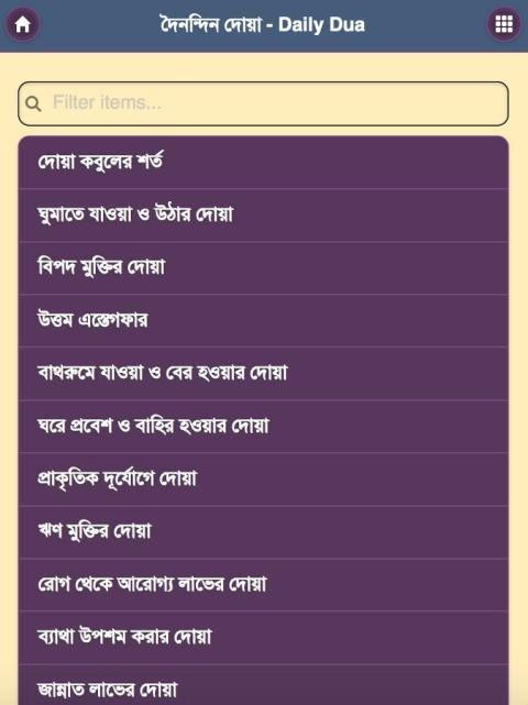 Here are the index of what you will get in this Daily Dua Bangla App: