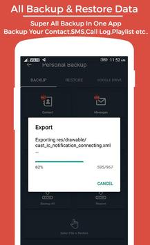 This app focuses on creating backup for contacts, call logs and sms. You can then share it to anyone. You also can upload them to google drive and you will be able to retrieve them later.
