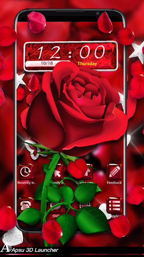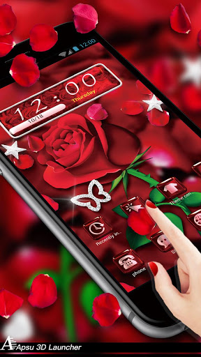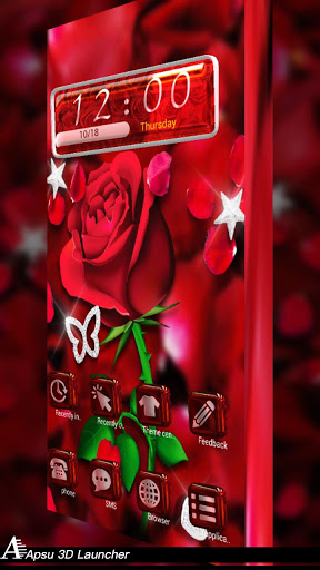 💎💎💎3D gorgeous red rose diamond glitter blossom theme is a cool 3D red theme of Apsu 3D launcher with 3D technology for Android mobile phone.