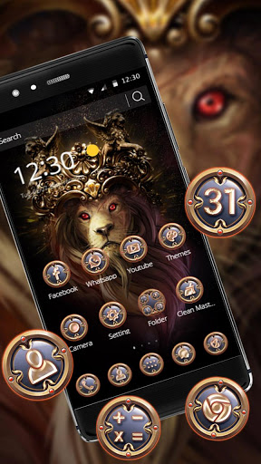 Golden Royal Crown Fire Lion Theme is a latest and stylish Theme with all Dark, coal, Charcoal,pitch black , slate, murky emoticons with trendy and stylish dark keyboard.Gold Lion Theme designed for girls and boys who do not fear from anything and want to bring bold and stylish look to their plain Mobile phone today. It has charcoal pitch black set as wallpaper filled with different nuances of dark sheds.