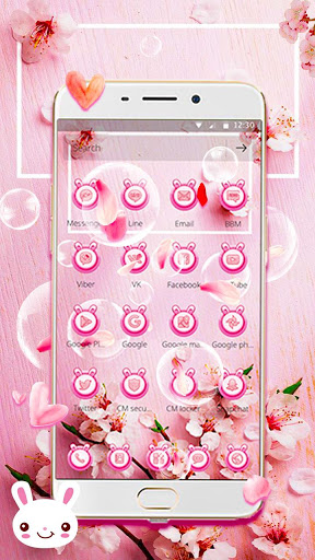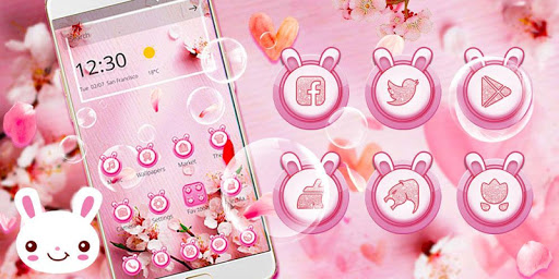 Bunny Mobile Theme with Dreamy Pink Peach Blossom Cherry Wallpaper and Kawai Pink Gold Icon
