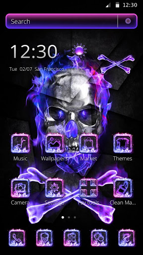 you can simply download Flaming Violet Skull Theme from anywhere as it is available on google play and all other Mobile apps store.