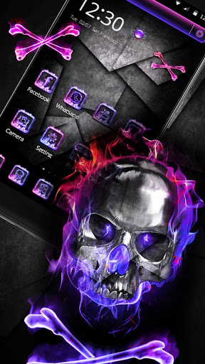 🌍-If you are fed up of all old and boring Themes and if you are looking for something amazing with violet, purple, periwinkle,lavender, skull, skeleton,cranium, scalp,skullcap,vertex then download flaming skeleton Theme with 3D animations and graphic effects.