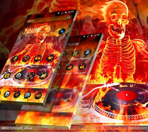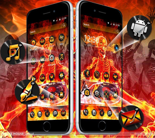 -😍This theme is valid for most Android models. Free Flaming skull DJ Theme designed for Launcher users technically. Amazing cool 3D transition effects and technology will let you hardly tear yourself away from it.