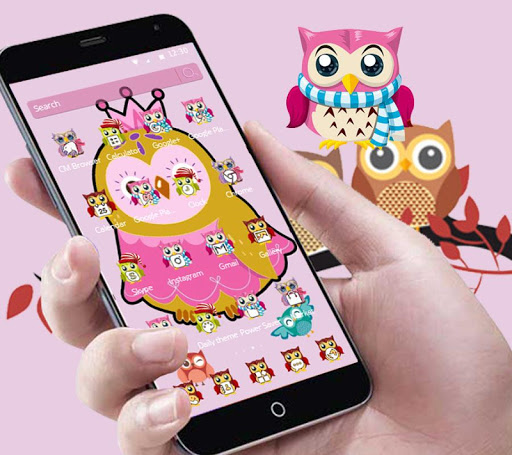 5. Sweet pink cartoon owl theme can make your mobile phone run smoother than ever before.