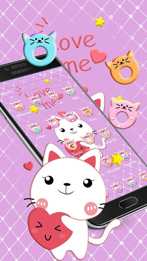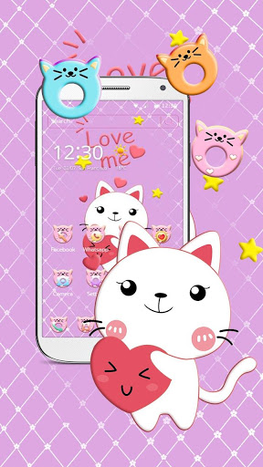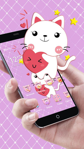 Come and enjoy this cat download on your phone. If you are tired of the boring screen of your phone, please enjoy the pink kitty, cute cartoon cat theme!