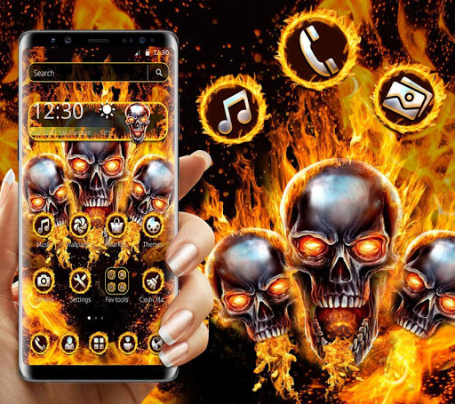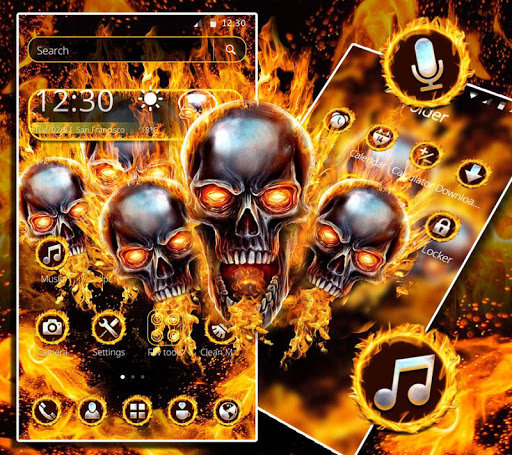 Apply the New Flaming Fire Skull Theme now, to make your phone faster and organized. The original app icons, clock and weather theme of your phone will be replaced by the Flaming Fire Skull Theme.