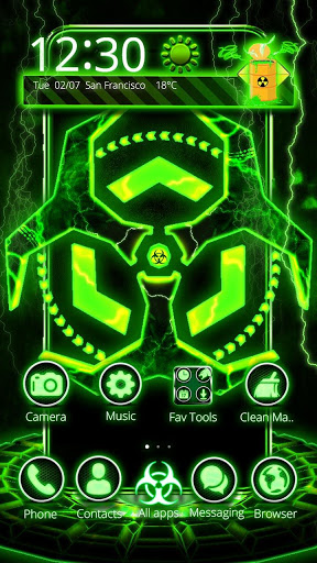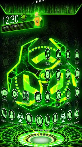 Customized 3D theme- Bilogical Hazard 3D theme with 3D Neon GreenOrganic Threat Hazard tema is a customize 3D theme and you can apply and remove trendy and Fluorescent bio substance 3D theme whenever you want to.