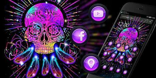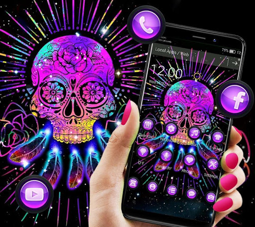 -😍3D Galaxy Skull Dream Catcher Gravity Theme icon design will make your cell phone more personality glitter. Full of cool and glitter skull&fancy(fantasy) purple fancy(fantasy) purple galaxy luxury, but also highlights your unique taste.