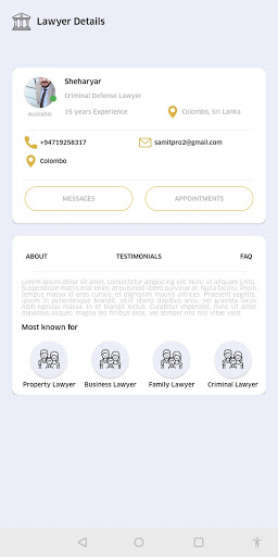 This app is a complete solution for your clients as well as for lawyers you've employed. They can get to know the appointments they have and they can get in touch with the clients through the app via a one on one chat or a call.