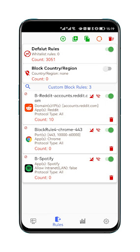2. Default rules strictly blocks advertisements, malwares, spams, spyware & trackers, coinminer and prevents your system from connecting to them.