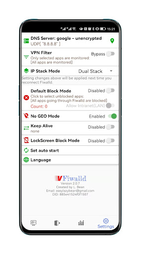 The Fiwalld is a free full-featured firewall on Android, keeps you away from malicious apps.