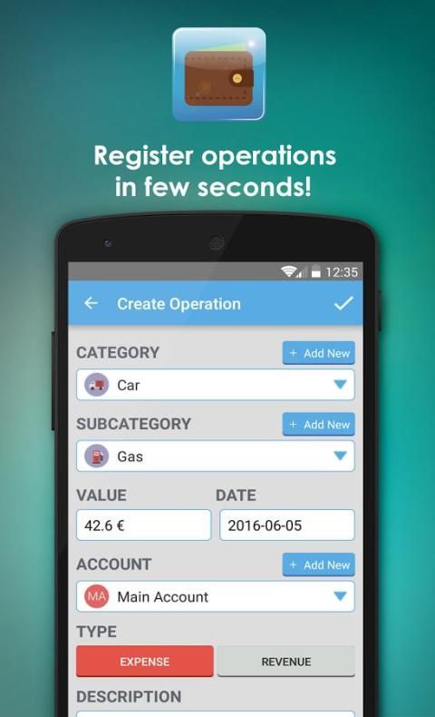 This app will help you manage all your expenses and revenues. Add operations based on categories and subcategories and link it to one of your accounts. Create as many accounts, categories and subcategories as you want!