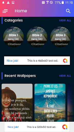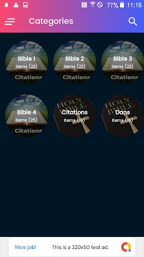 Hello how are you! next I want to show you in less than two minutes, to quickly and simply control this application Citations de la Bible, without having to deal with jams in the application and less difficulties to observe all your images.