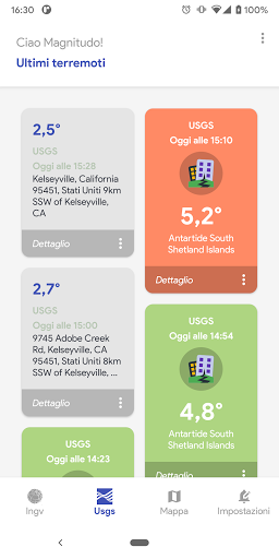 Magnitude takes you to areas hit by an earthquake greater than 2.0ml. Earthquake data are taken from INGV: © ISIDe Working Group (INGV, 2010), and from USG: United States Geological Survey.