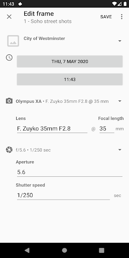 you can record metadata (time, location, exposure, etc) for your film photos right from Lock screen, Smart watch or the app itself. One click is all it takes.