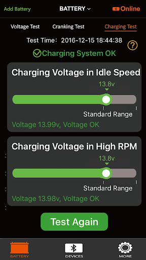 - Checks cranking system(battery condition) and charging system(alternator)
