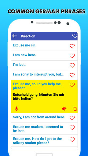 Learn German Language Free application was developed for those who want to learn German phrases and sentences quickly and free!