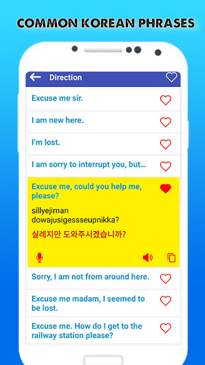 Learn Korean Language Free application was developed for those who want to learn Korean phrases and sentences quickly and free!
