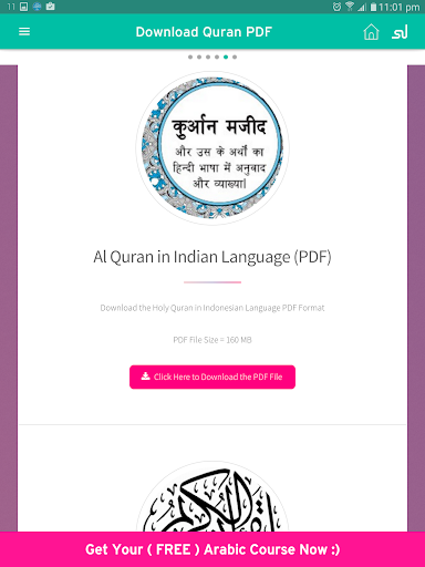 • Other than Hindi Quran translations, languages includes English, Italian, Persian, Indonesian, French, Chinese, Spanish, and Urdu