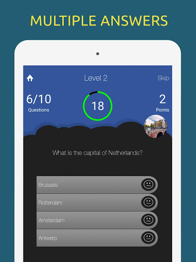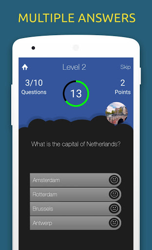 World Capitals Quiz is an effective way to memorize capital cities of all world countries. This app also helps to increase general awareness about various countries of the world. Find out how many capital cities you already know and learn the capitals you didn't know.