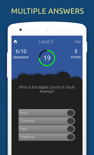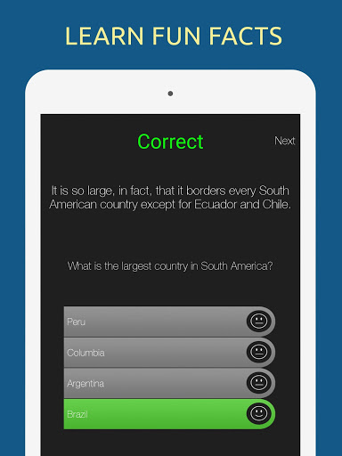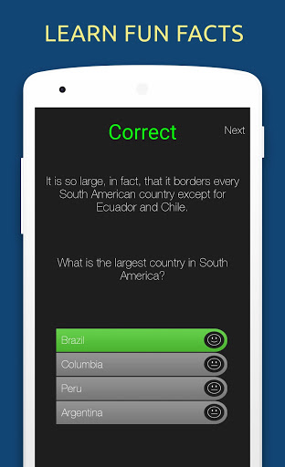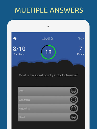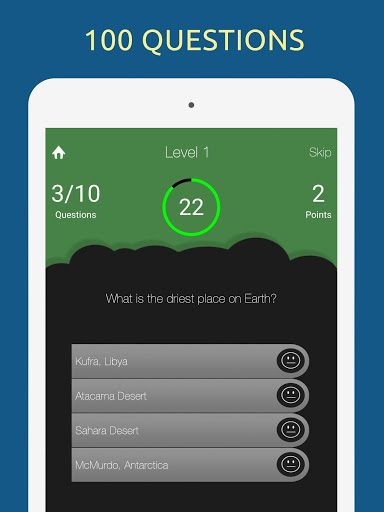 You can skip a question, if you don't know the answer. If you are correct, you can read a geographical fact!