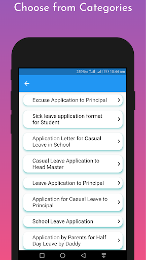 Quick search option given in the application which helps you in finding your required leave application/letter format. This is free leave letter writing app.