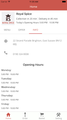 Royal Spice is a takeaway based on Strand Parade The Strand in Goring-By-Sea. Indian food is delivered straight to your door when you order online through our new website. Royal Spice specialises in Indian cuisine offering home dining so why not be adventurous and create your own menu either a simple meal for one or an elaborate banquet if entertaining. All dishes are cooked by their chef who uses several different spices to enrich the flavour of their food creating dishes for you all to enjoy. The dishes they serve include Biryani, Traditional Curries, House Specials and Tandoori Dishes plus many more so browse through the menu and see what takes your fancy.
