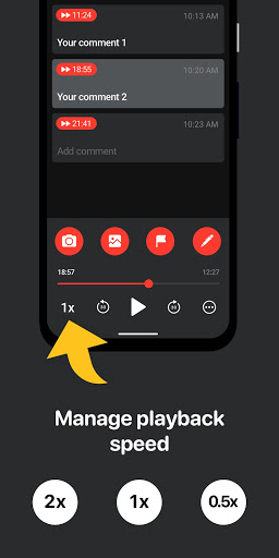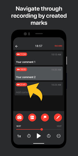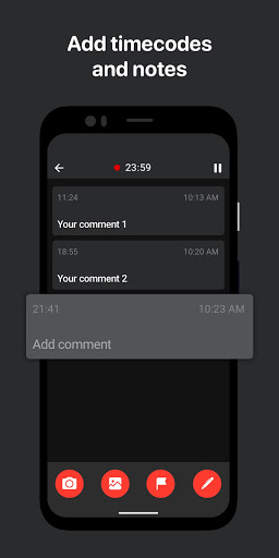 Lecty allows to highlight the important moments of the recording, instantly adding timecodes, comments, photos and videos. The result is the visual representation of the recording with time reference marks.