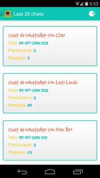 Select a WhatsApp chat and enjoy of funny analyses of the different personalities that you can find in your chats.