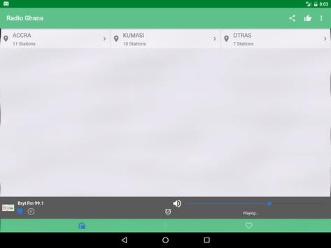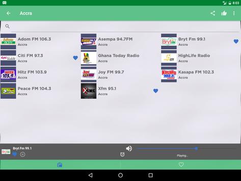 Listen free internet radio Ghana, fast searches recently heard radio, accessed from the menu and selecting recent reproductions. Below is a list of the main radios available: Adom FM 106.3, Asempa 94.7FM, Atlantis Radio 87.9, Breeze 90.9FM, Kasapa FM 102.3, Citi FM 97.3, Fontomfrom FM, All Friends 94.5, Angel FM 96.1, ASHH 101.1, BOHYE 95.3, Boss FM 93.7, Fox FM 97.9, GHRadio1, Top 103.1, GBC Volta Star 91.1, Radio Gold FM 90.5, GBC Uniiq FM 95.7, Okay FM 101.7, Kantinka fm 97.7, MONTIE FM 100.1, GBC Obonu FM 96.5, Happy 98.9 FM, HighLife Radio, Hitz FM 103.9, Hot FM 93.9, Joy FM 99.7, Kapital Radio 97.1 Kessben FM 93.3, Luv FM 99.5, Metro 94.1 FM, Nhyira FM 104.5, Price FM 107.3, Shaft FM 98.1, RFI Afrique 90.0, Starr 103.5, New Mercury 91.5, Live fm 91.9, Oman FM 107.1, Peace FM 104.3, SolidFM 103.7, Sunsum FM 98.7, Ultimate Radio 106.9, VIRGIN CITY RADIO 105.3, YFM 102.5, Zuria FM 88.7, Radio XYZ 93.1, Pravda Radio 93.5, PINK 96.9, Sweet Melodies FM 94.3, Xfm 95.1, Rite 90.1 Fm, Sky FM 96.7MHz,MIGHT FM 90.5, Radio Maxx 105.1 FM, Ark FM 107.1 MHz, Anapua FM 105.1, Agoro na eye de 93.1, AGOO EAST 96.9, Ahomka FM 99.5, Space FM 87.7, A1 Radio 101.1MHz, Diamond FM 93.7, Melody FM 91.1, Light FM 94.9, Shalom FM 100.3, Bryt Fm 99.1, Focus FM 94.3