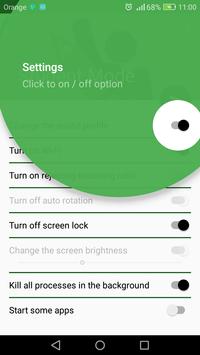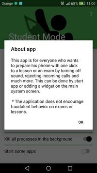 This app is for everyone who wants to prepare his phone with one click to a lesson or an exam by turning off sound, rejecting incoming calls and much more. This can be done by start app or adding a widget on the main system screen.
