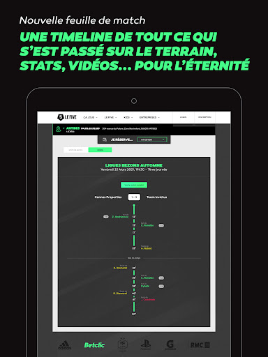 - Un flux d’inscription simplifié : fini les 22 questions à remplir pour enfin avoir ton compte LE FIVE. Désormais, tu peux te connecter via Google. Une fois logué, tu pourras accéder en quelques clics à tes derniers matchs, tes prochains matchs, tes infos persos, ton solde, etc...