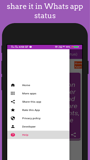 ✔Very easy to use interface just swipe left and right to read the best live attitude status in Hindi and easily set that as your WhatsApp status or FB status.