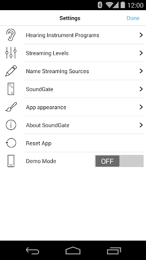 The app combines remote control features for Hearing Instruments with an intuitive visual interface to the SoundGate system, which connects users wirelessly to Mobile Phones, Remote microphones, TV sound transmitters etc. The App works with the intermediate device SoundGate 3 (or later).
