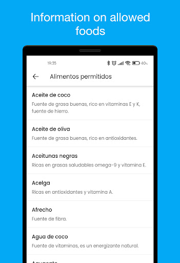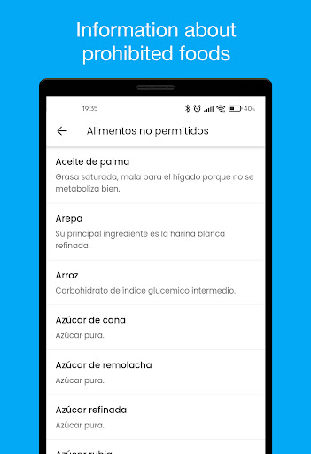 * Information of allowed and not allowed foods for a diabetic person.