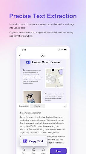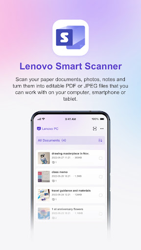 Lenovo Smart Scanner is free to download and turns your device into a powerful scanner that recognizes text from images automatically through optical character recognition (OCR). Scan your paper documents, photos, notes and turn them into editable PDF or JPEG files.This app does not support phones using 32-bit processors. We apologize for the inconvenience caused.