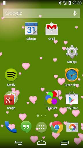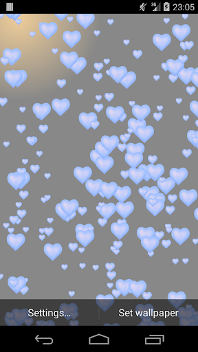 Simple hearts live wallpaper. Shows hearts floating up on the phone screen. You can configure the amount of hearts and colors of background and hearts.