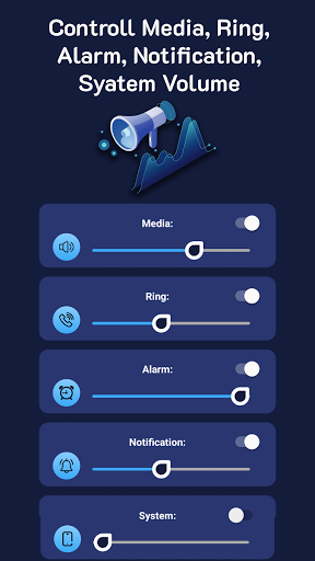 Adjust and save app all volume setting for (Media, Ring, Alarm, Notification, System) and full settings will be set while app is launched.