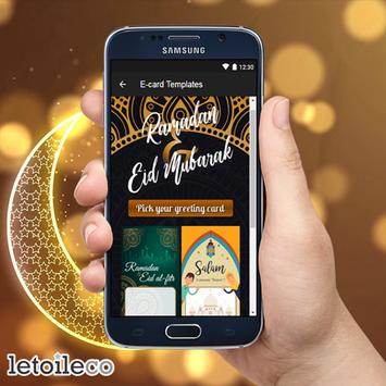 Write special wishes and greetings to your Muslim friends and family with our E Card feature! Add text to your e card and share it via Whatsapp, Facebook, Twitter and many other apps!