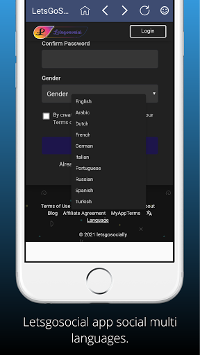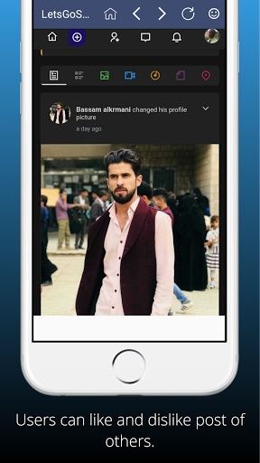 The most important desktop features of Letsgosocial are also available on the app, such as writing on timelines, liking photos, browsing for people, blogging, streaming, playing and editing your profile and groups.