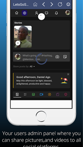 Letsgosocial app will allow you to access our Social Networking Platform. With our new feature, user can post, photos, call, stream live video, promote product, make money, play games and chat.