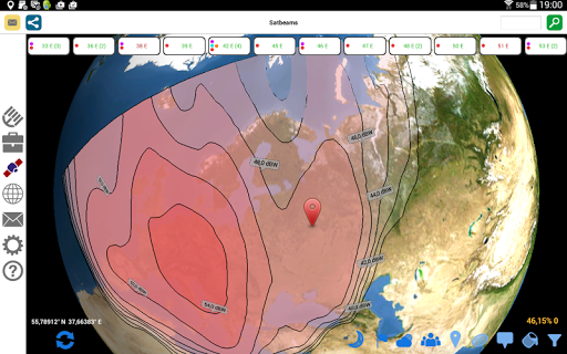 - Satellite footprints at your fingertips - quick access to any position, satellite and beam; overlay multiple beams simultaneously to check the interference, overlay footprints with clouds, population density and other data. New: we started to add the uplinks (just a few now, but we keep working on this!)