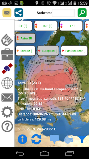 Worlds best satellite footprints browser, dish alignment calculator and AR Sat Finder combined in one tool for your tablet or smartphone!